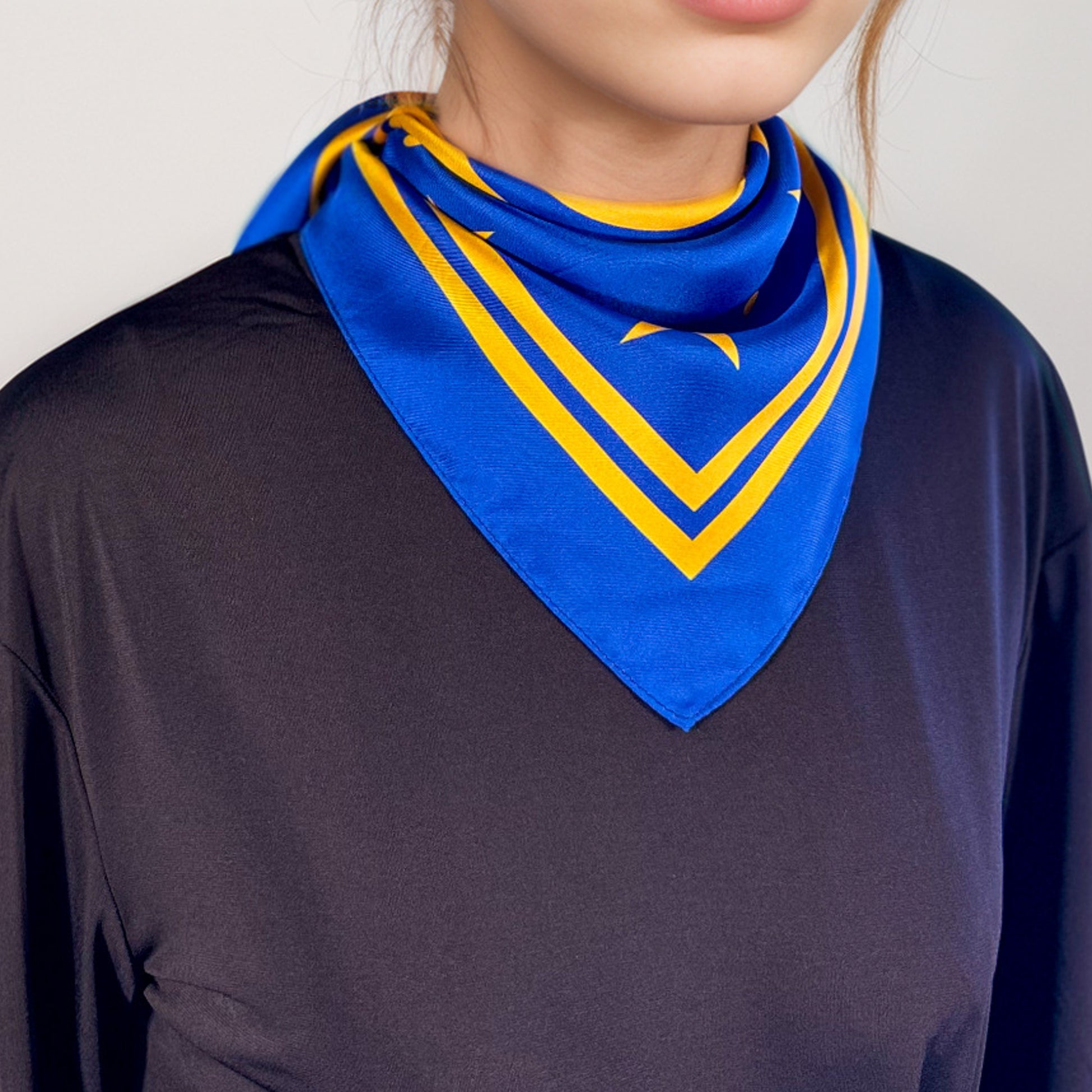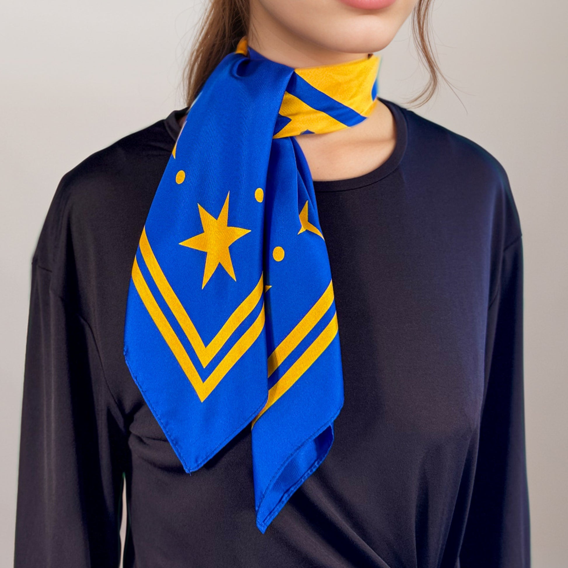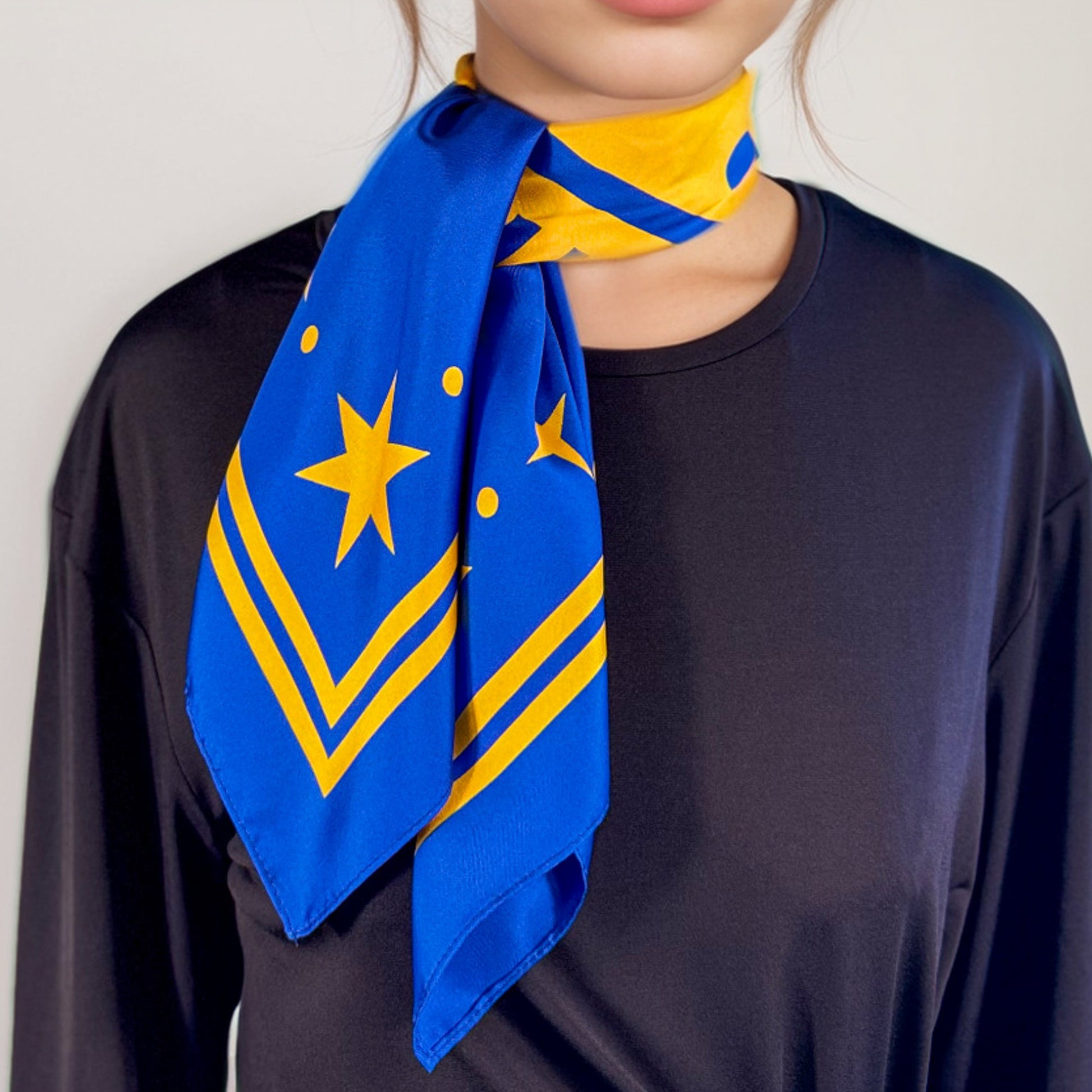 Dieser blau + gelb gefärbte Schal wird um den Hals, im Haar, in einem Gürtel oder an einer Beutel befestigt. Seine Pop -Farbtöne verleihen ihm einen durchsetzungsfähigen, schicken und modernen Stil, perfekt zum Sublimieren eines Outfits mit Originalität. Geeignet für Frauen und Männer.