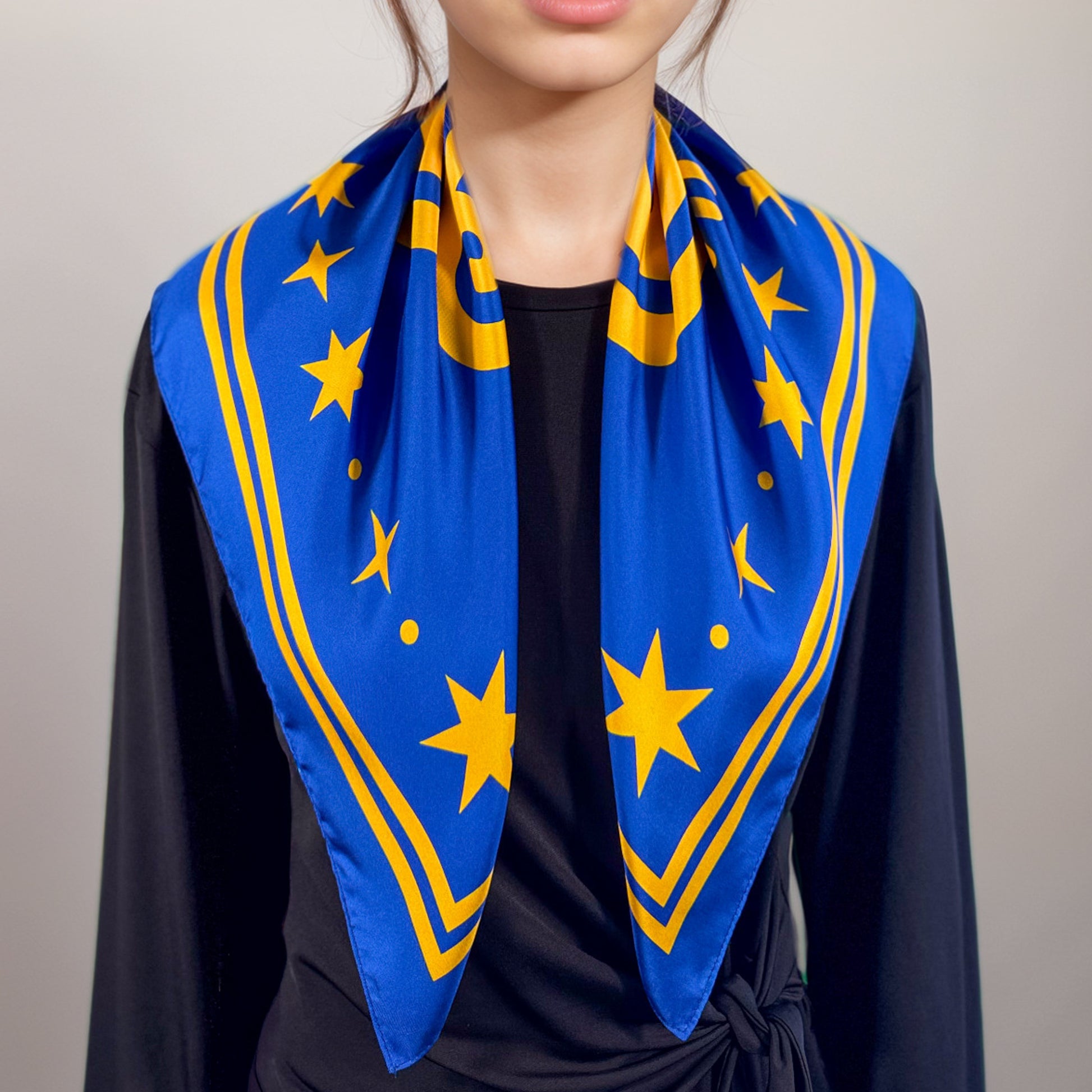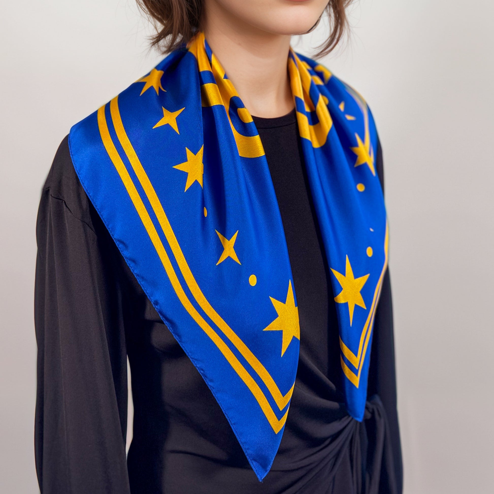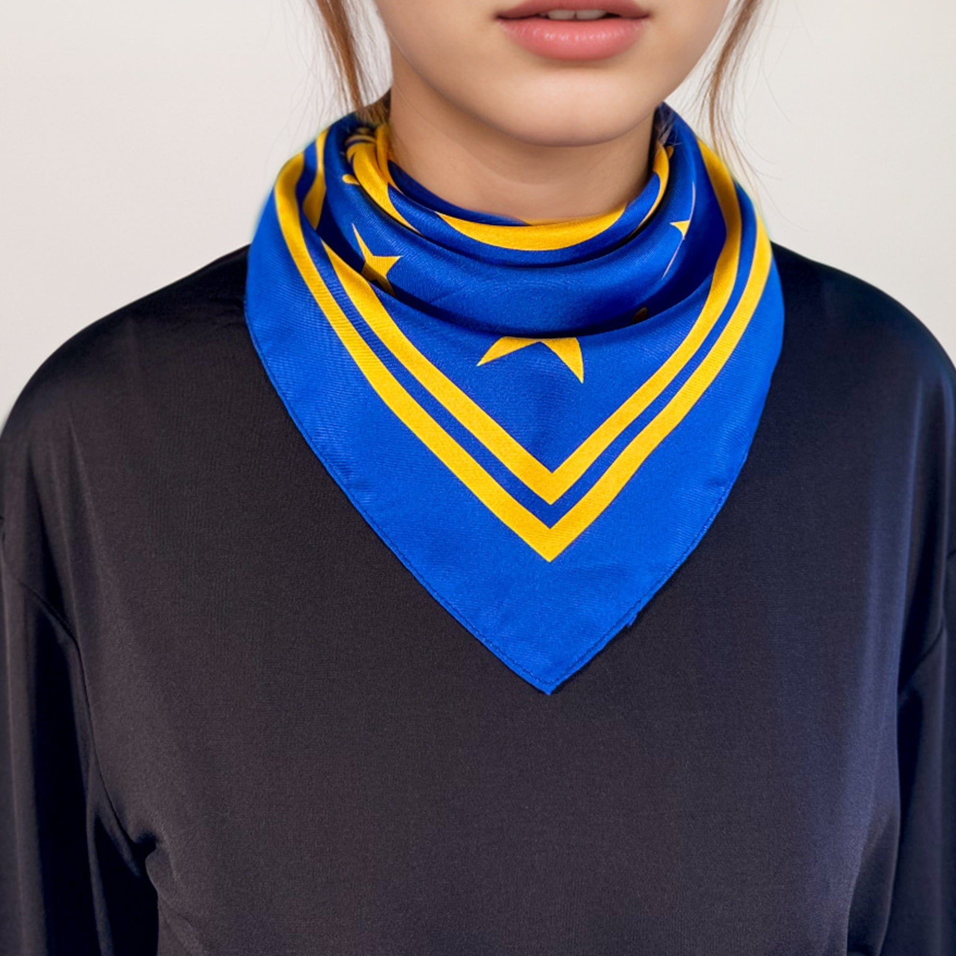 Dieser blau + gelb gefärbte Schal wird um den Hals, im Haar, in einem Gürtel oder an einer Beutel befestigt. Seine Pop -Farbtöne verleihen ihm einen durchsetzungsfähigen, schicken und modernen Stil, perfekt zum Sublimieren eines Outfits mit Originalität. Geeignet für Frauen und Männer.