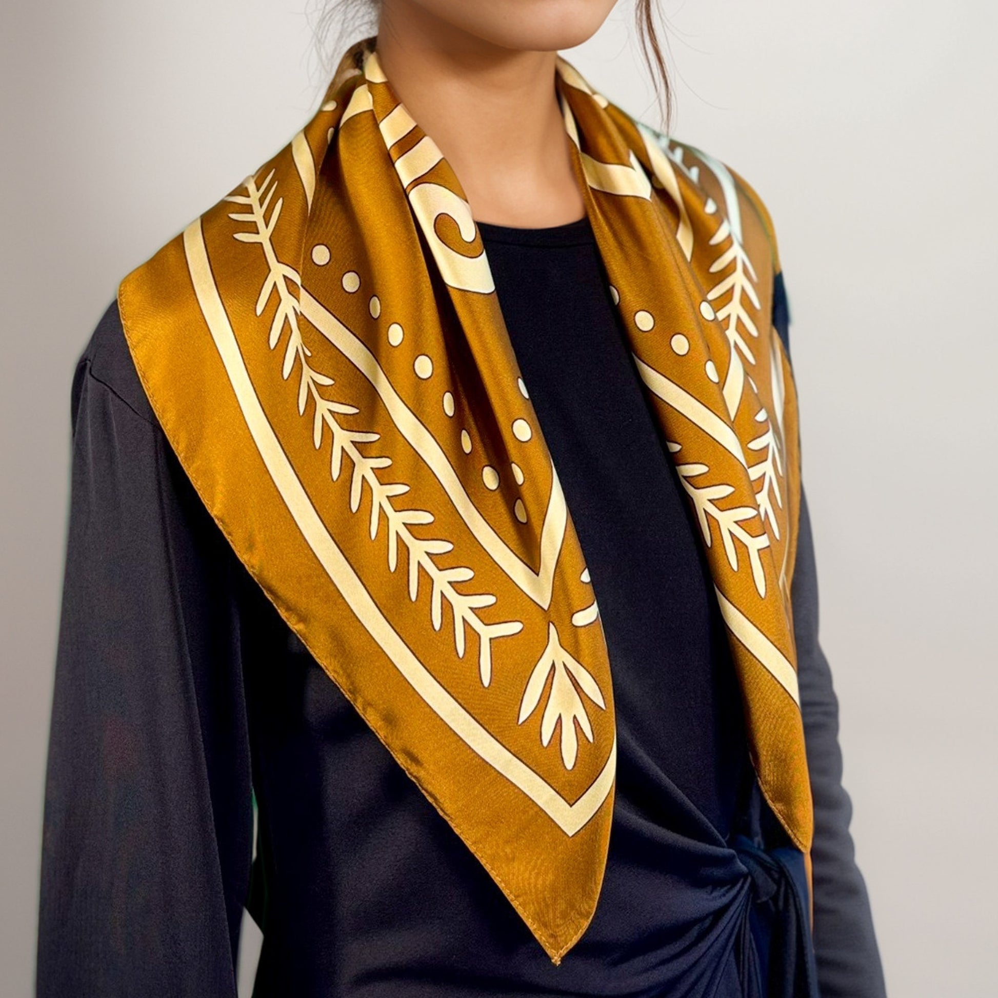 Dieser Schal in braunen + beige Farben wird um den Hals, im Haar, in einem Gürtel oder an einer Beutel befestigt. Seine Pop -Farbtöne verleihen ihm einen durchsetzungsfähigen, schicken und modernen Stil, perfekt zum Sublimieren eines Outfits mit Originalität. Geeignet für Frauen und Männer.