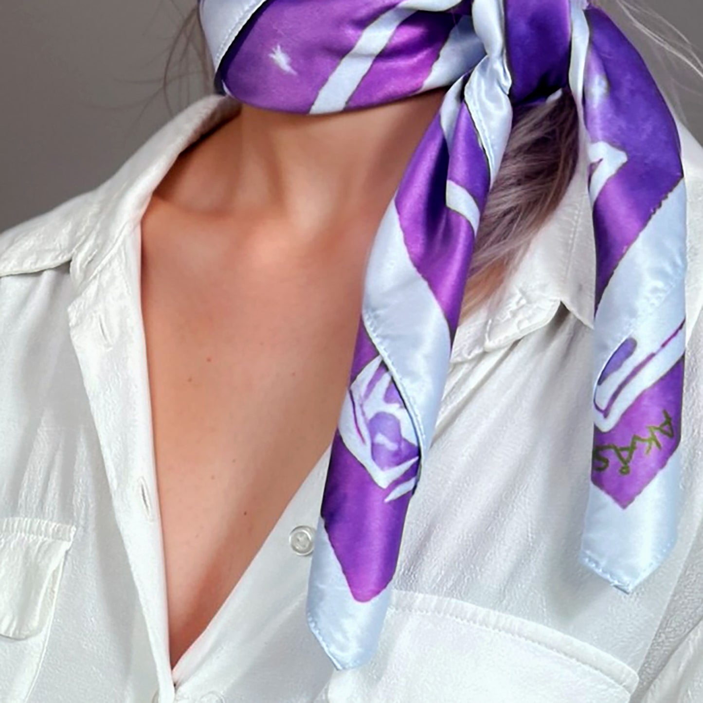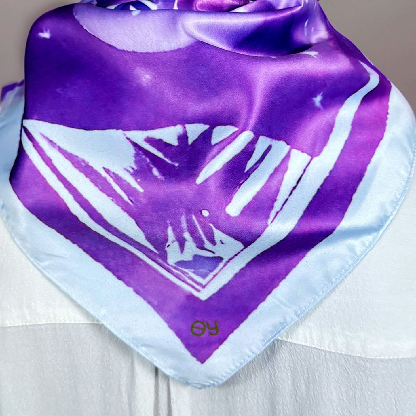 Made from silk-effect polyester, it captivates with its exceptional softness, satiny feel and elegant sheen. More accessible but still meaningful, this 66 cm square scarf connects you to the power and serenity of your protective sign.