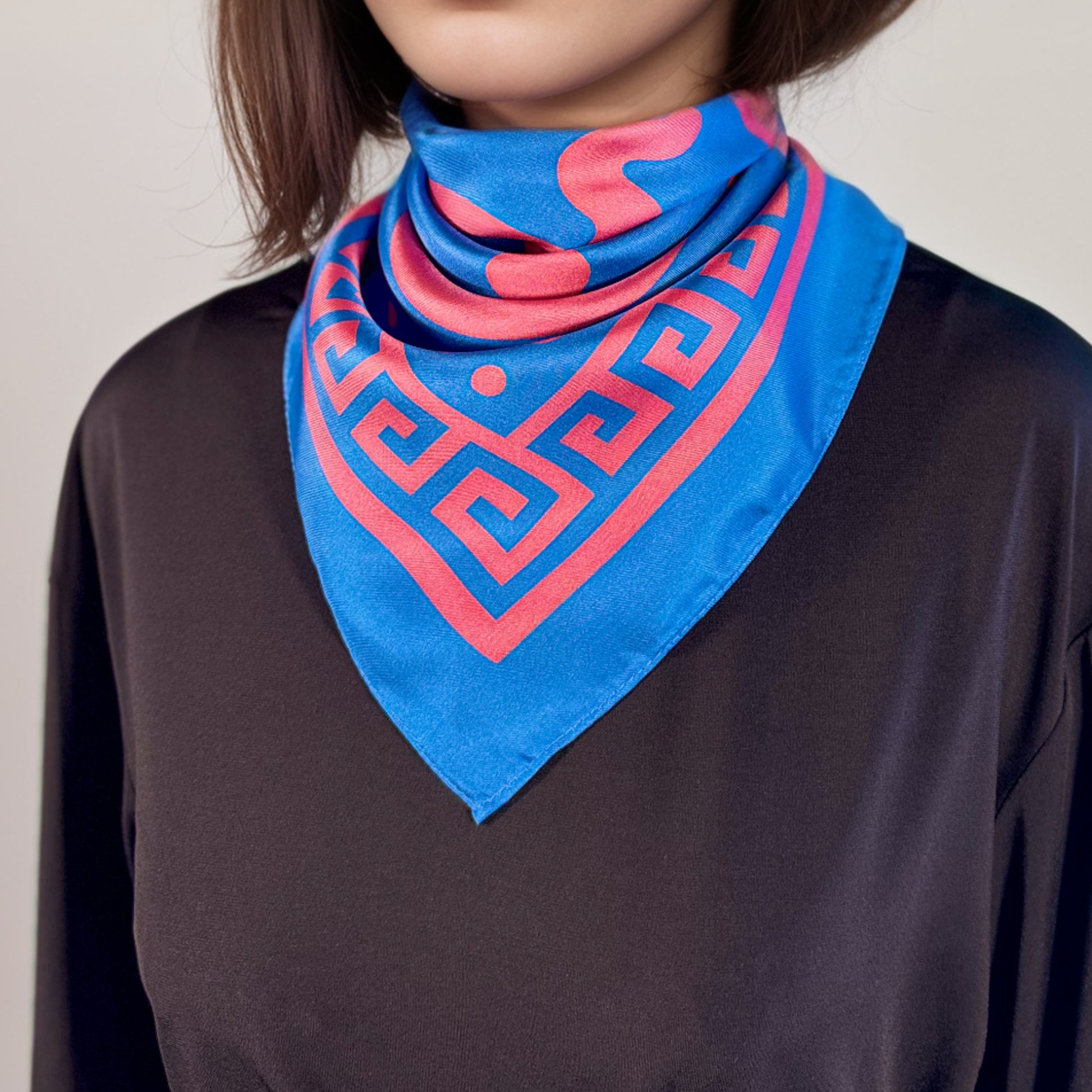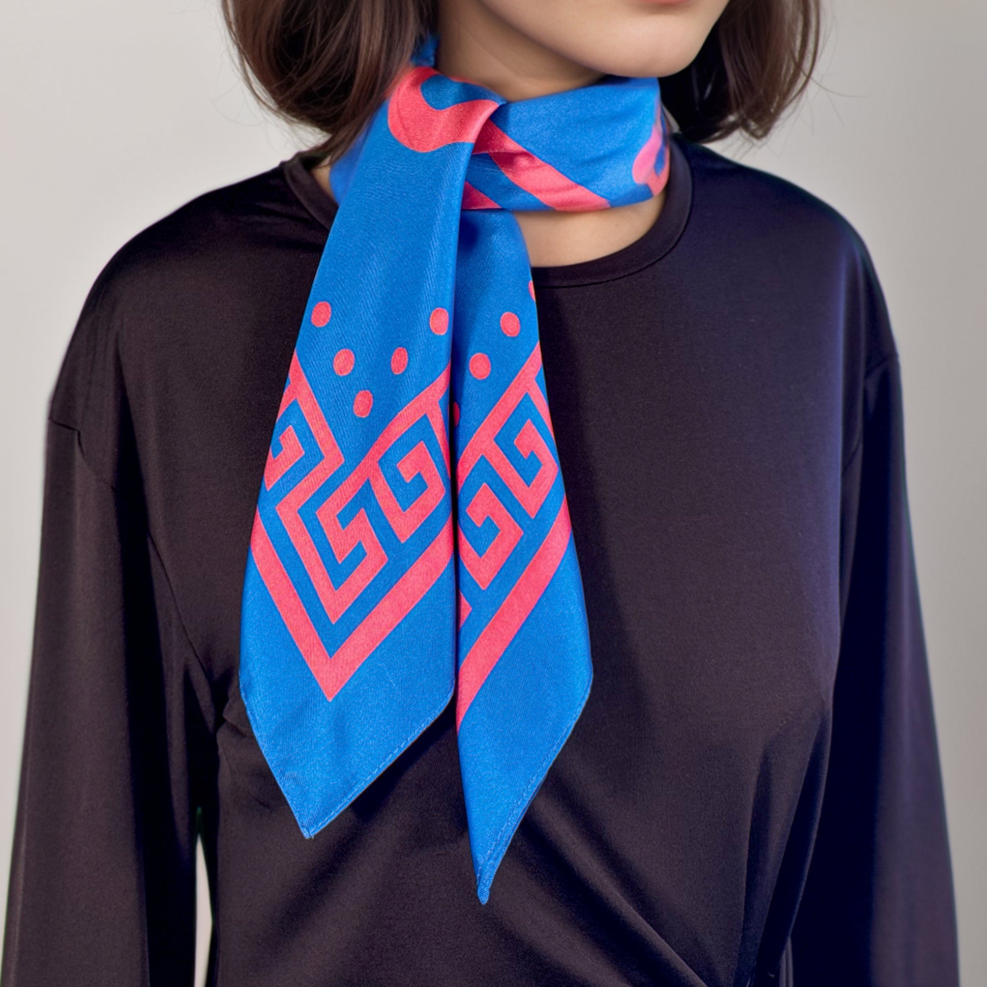 Esta bufanda azul y rosa se puede llevar alrededor del cuello, en el pelo, como cinturón o enganchada a un bolso. Sus tonos vibrantes le dan un estilo atrevido, chic y moderno, perfecto para realzar cualquier look con originalidad. Ideal tanto para mujer como para hombre.