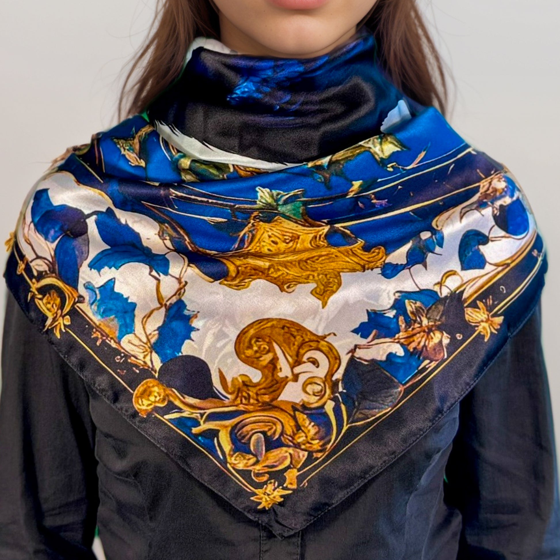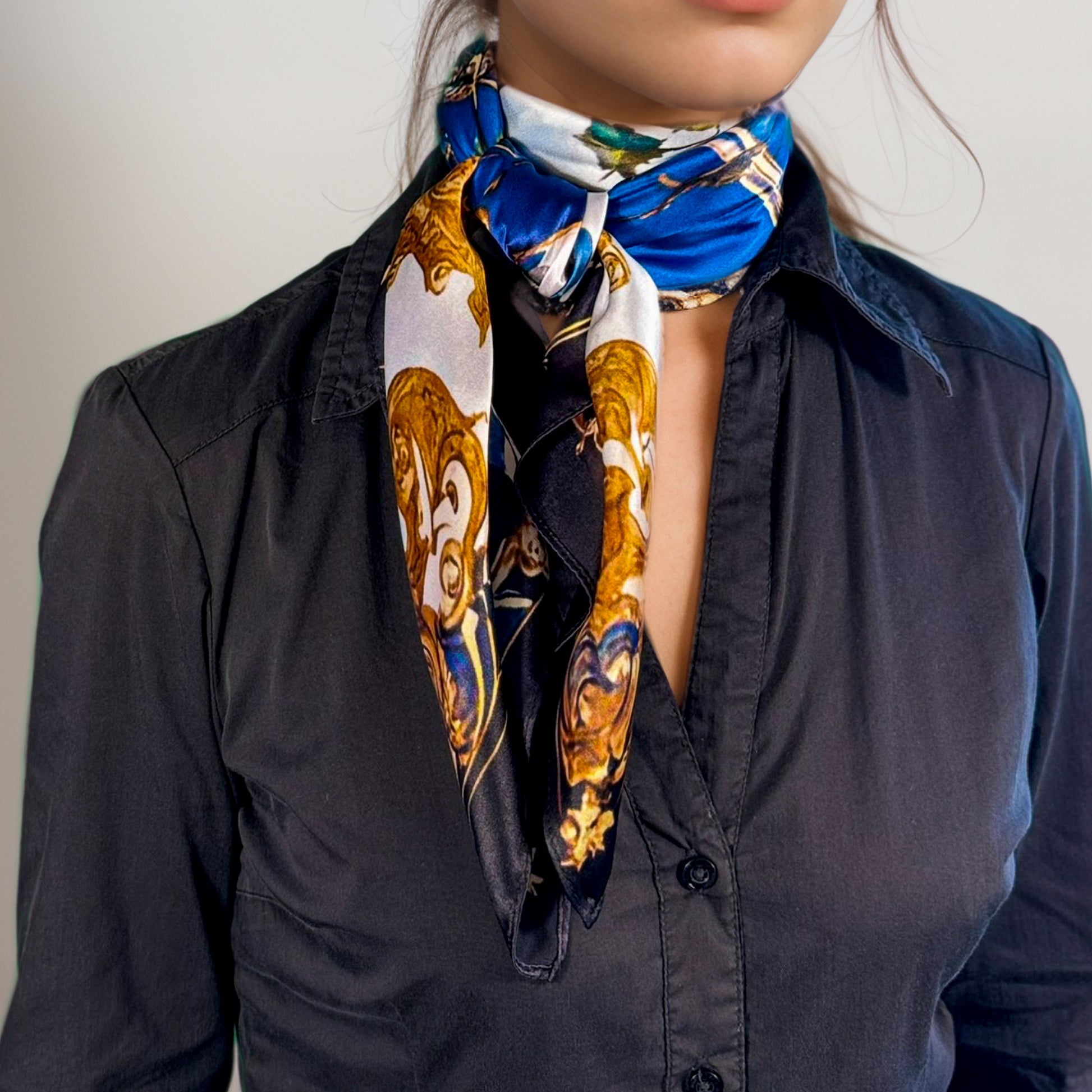 Añade un toque místico y atrevido a tus outfits con este versátil pañuelo de seda: