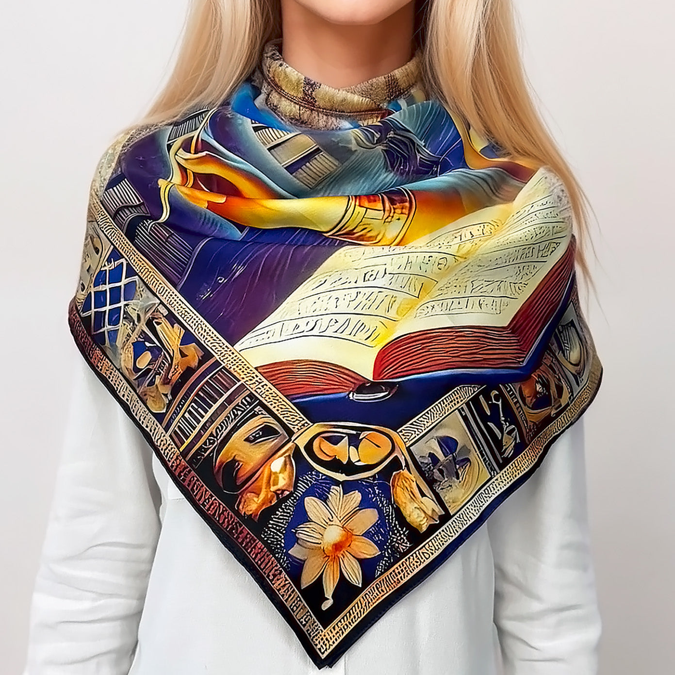 "Esta bufanda es simplemente hermosa. La calidad de la seda es excepcional y los colores son vibrantes. Me siento conectada con la energía del Halcón cada vez que la uso. - Marie L.