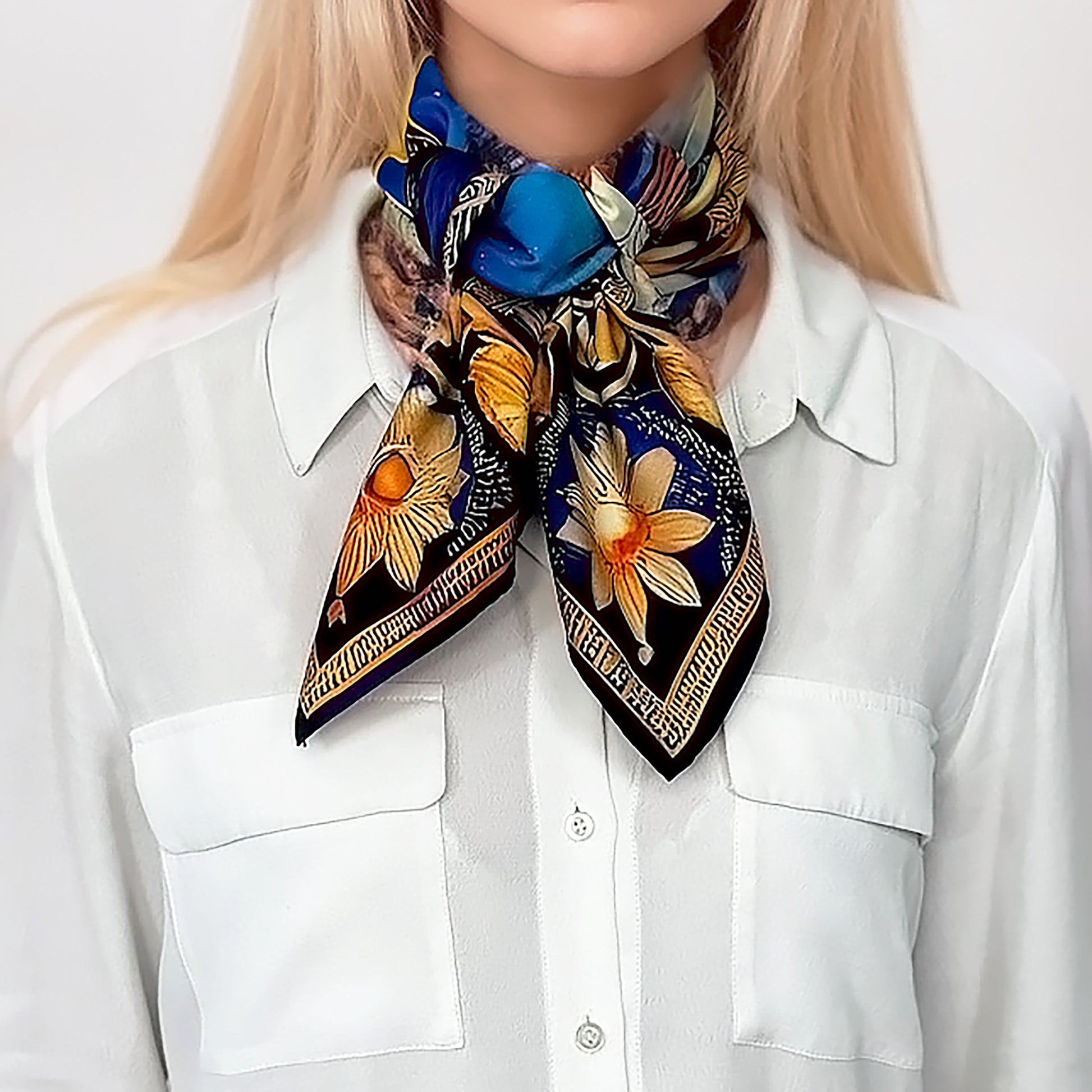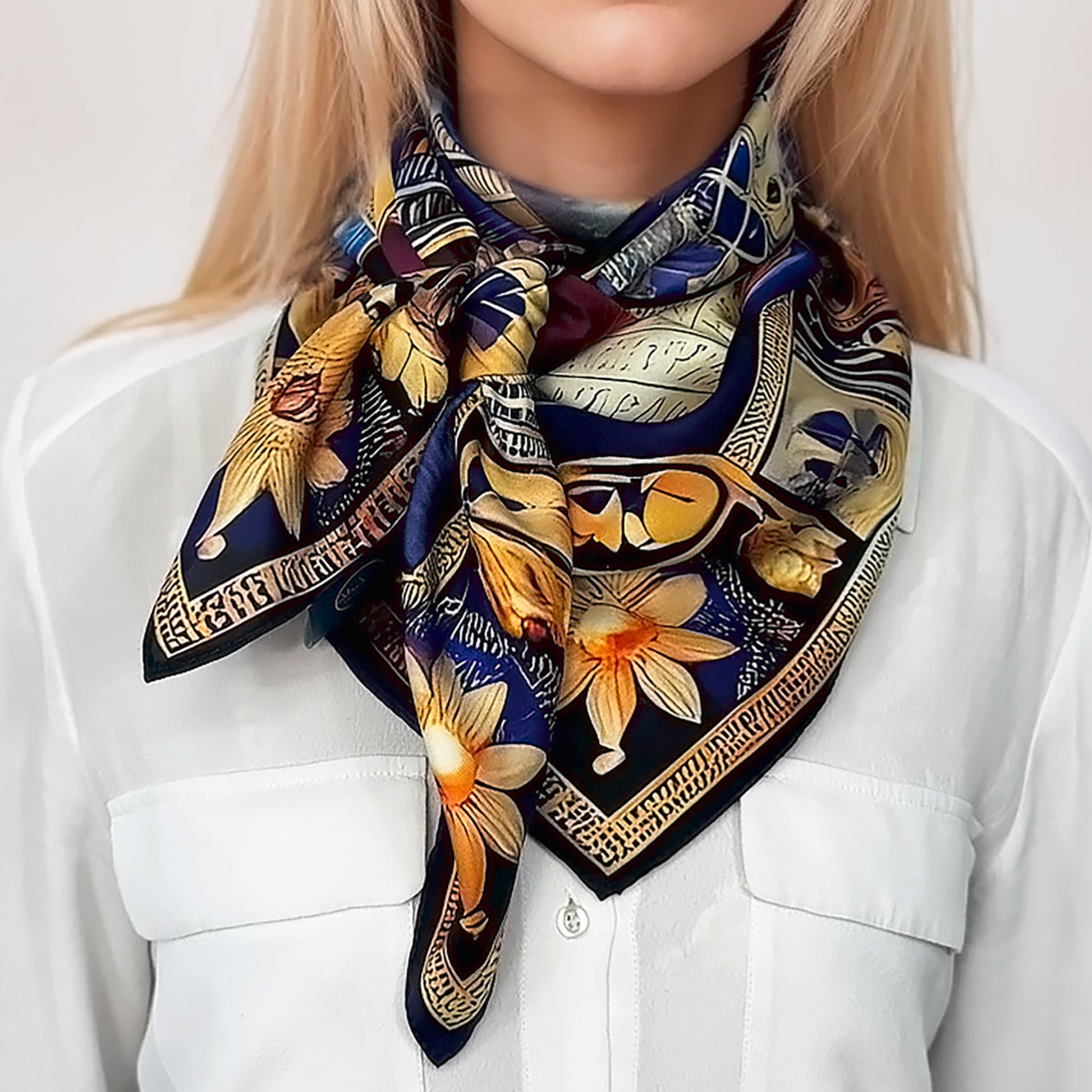 Este pañuelo de seda se adapta a todos los estilos: Alrededor del cuello para un look sofisticado. Como cinturón para un toque de originalidad. Como accesorio de bolso para un look bohemio chic.