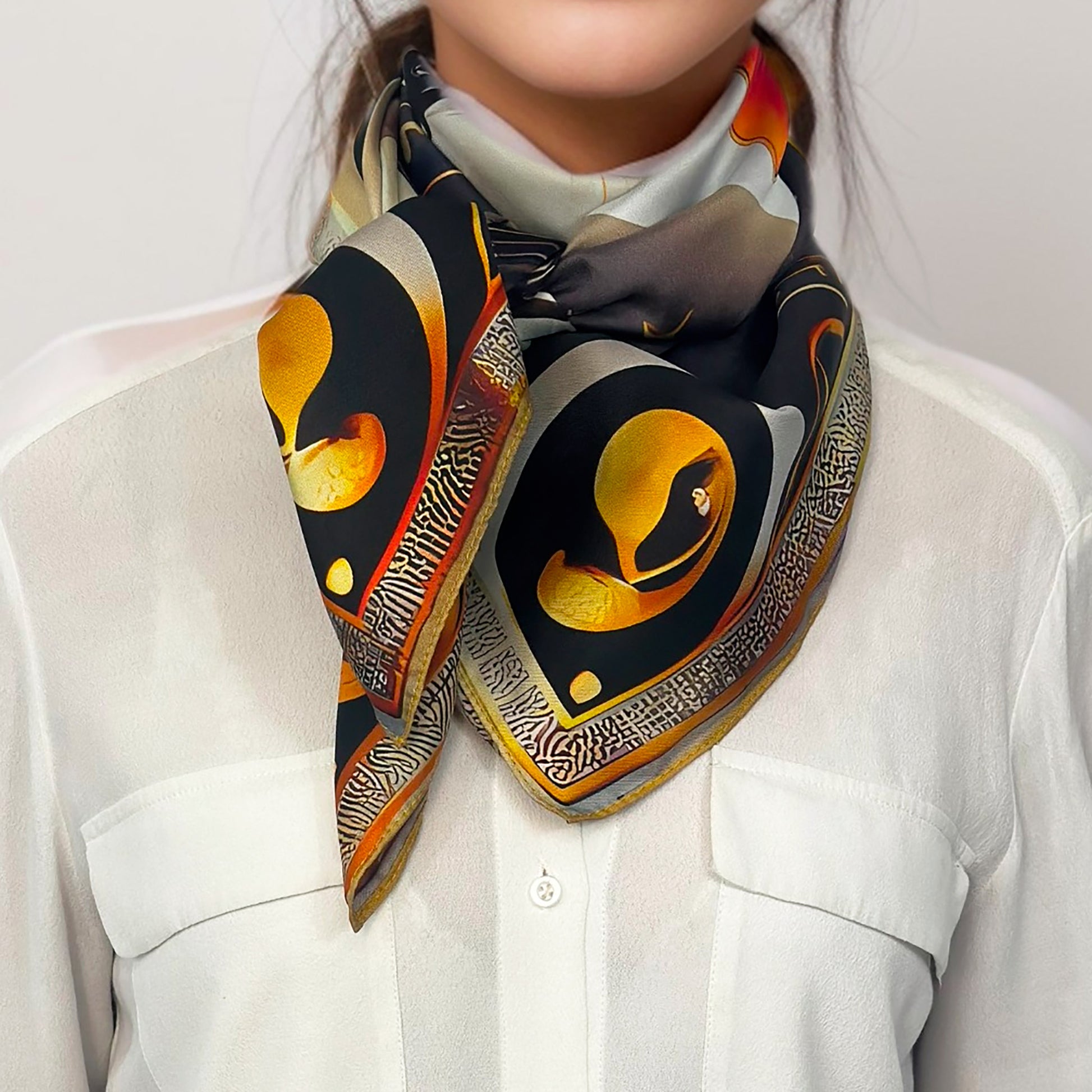 Carré 88 en Soie – Bastet : Charme Mystérieux et Protection Féline