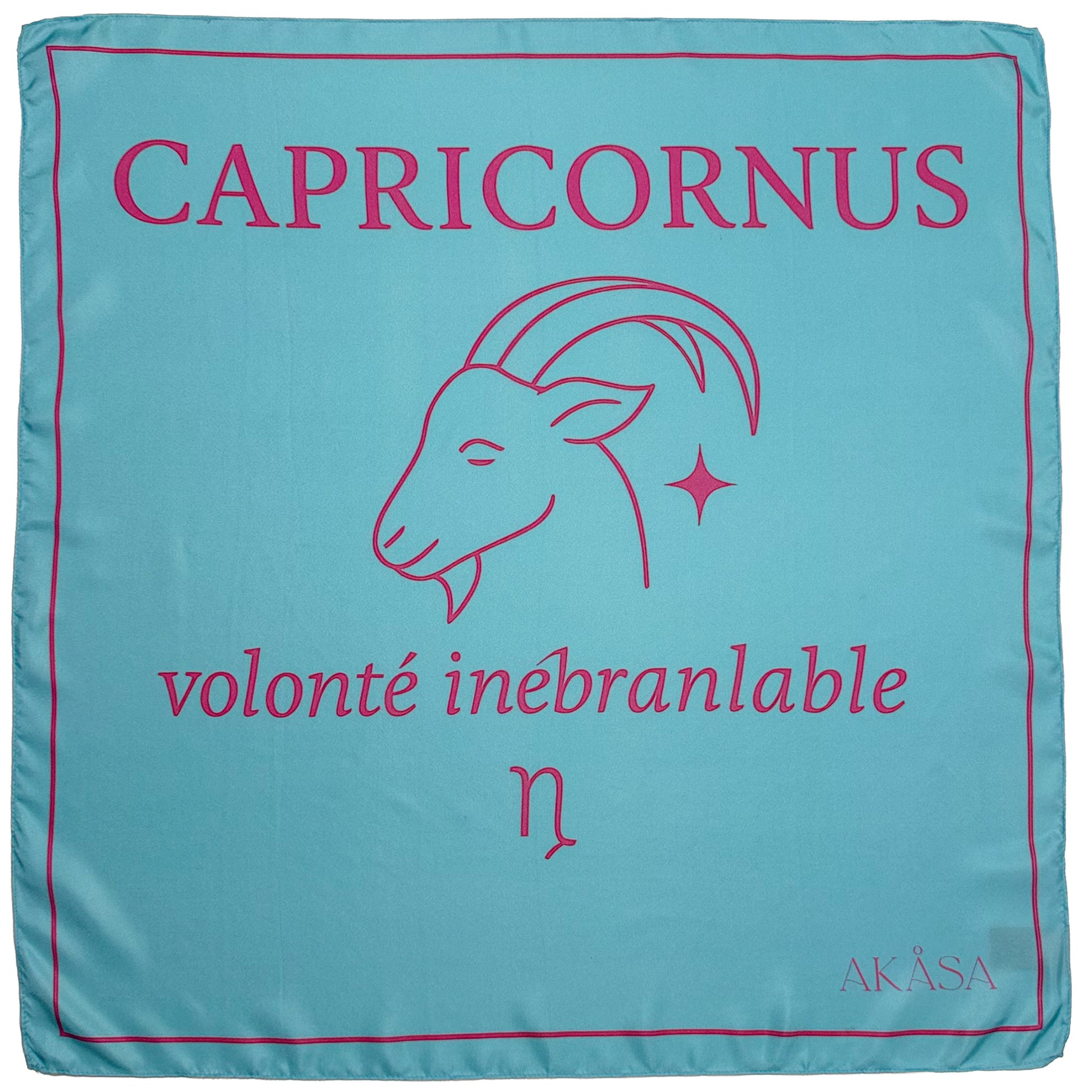 Le foulard CAPRICORNUS célèbre la détermination, la patience et la force intérieure du Capricorne. Avec son bleu clair apaisant et son symbole de chèvre élégamment illustré, il reflète une énergie stable, ambitieuse et profondément ancrée.