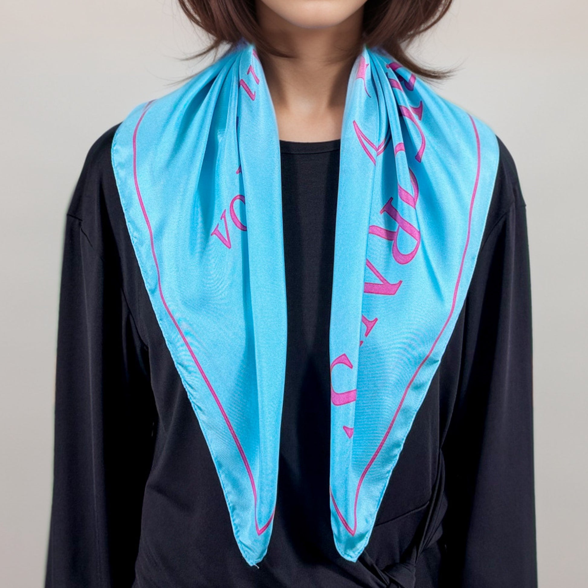 CAPRICORNUS apporte un style sobre, moderne et très “clean aesthetic”. Noué autour du cou, porté en bandana ou en accessoire de sac, il donne une allure sérieuse mais affirmée. Son twill de soie double face lui offre une brillance subtile et un tombé impeccable.