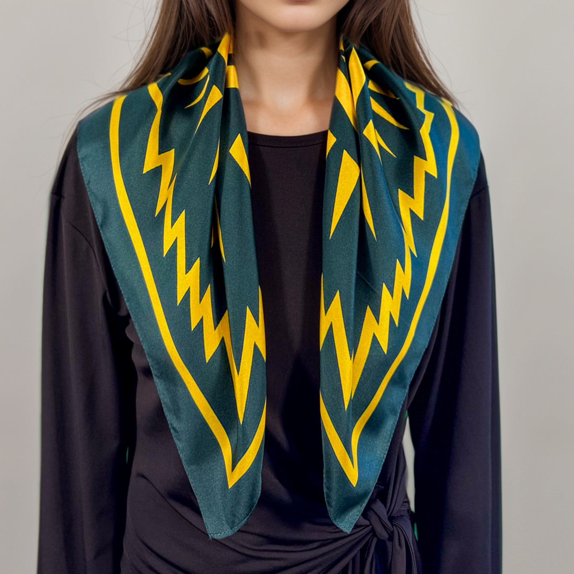 Ce foulard aux couleurs Vert + Jaune se porte autour du cou, dans les cheveux, en ceinture ou attaché à un sac. Ses teintes Pop lui donnent un style affirmé, chic et moderne, parfait pour sublimer une tenue avec originalité. Convient aux femmes comme aux hommes.