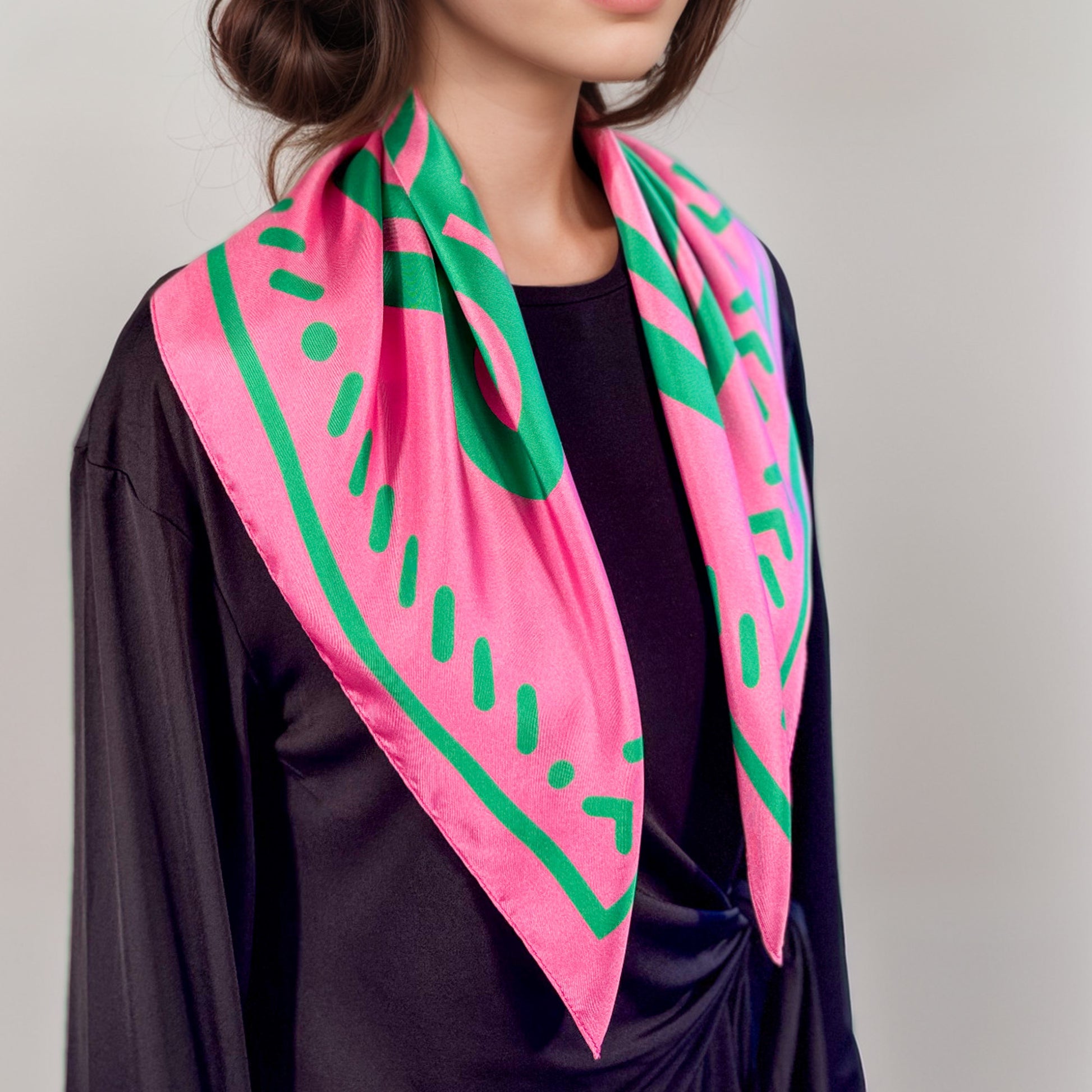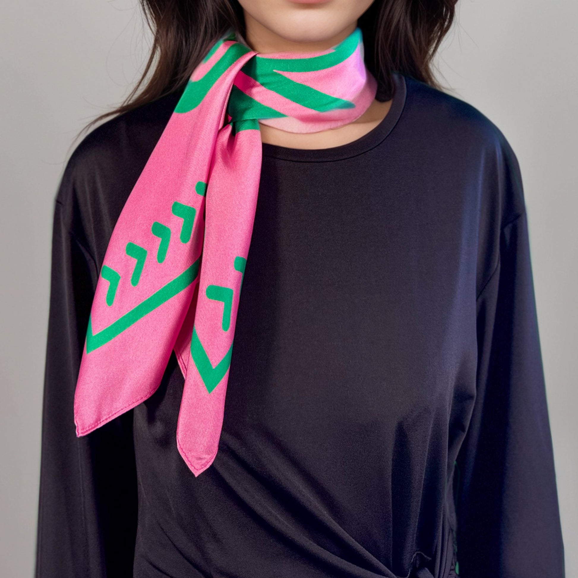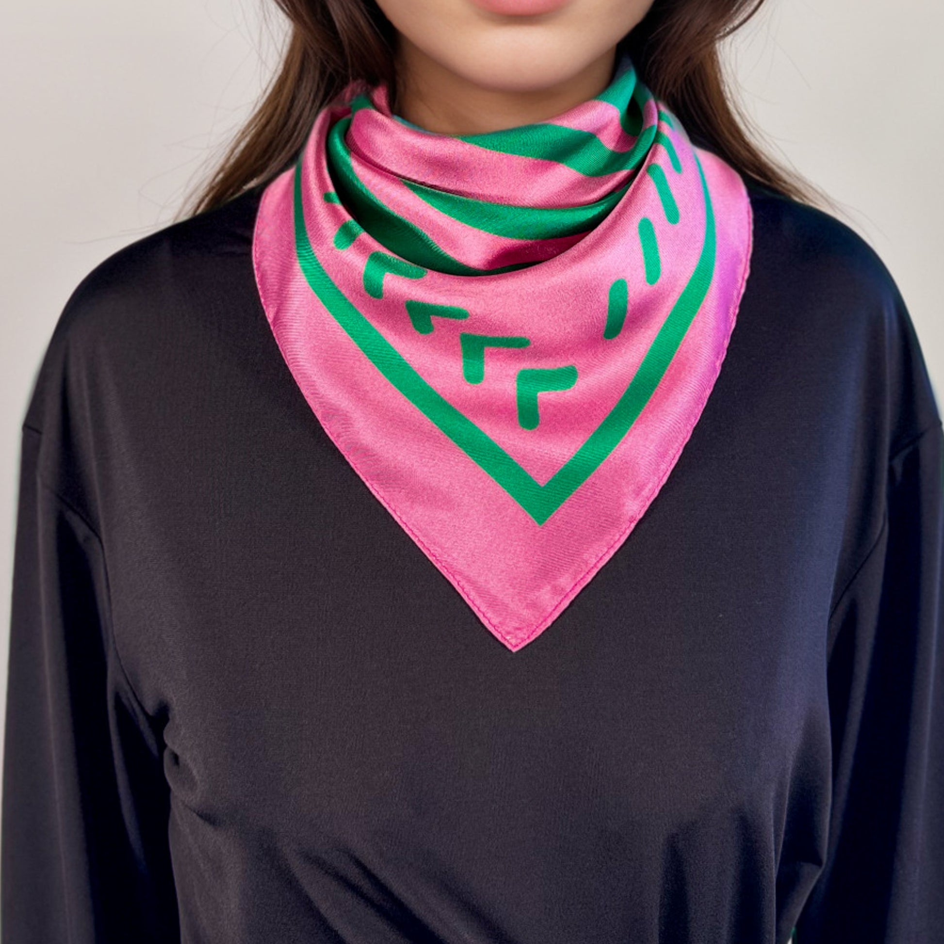 Ce foulard aux couleurs Rose + Vert se porte autour du cou, dans les cheveux, en ceinture ou attaché à un sac. Ses teintes Pop lui donnent un style affirmé, chic et moderne, parfait pour sublimer une tenue avec originalité. Convient aux femmes comme aux hommes.