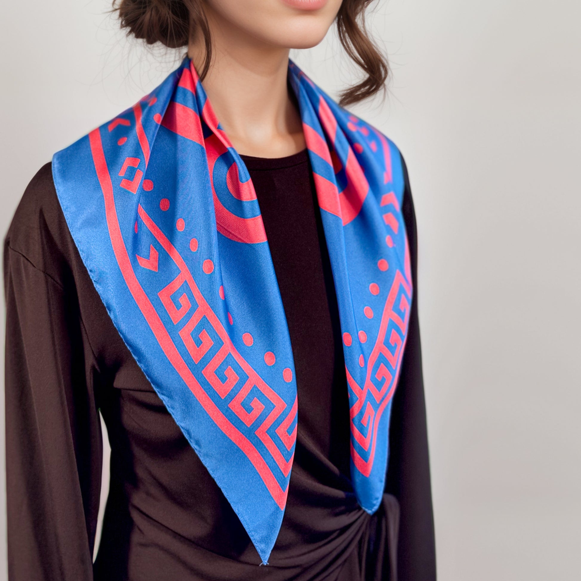 Ce foulard aux couleurs Bleu + Rose se porte autour du cou, dans les cheveux, en ceinture ou attaché à un sac. Ses teintes Pop lui donnent un style affirmé, chic et moderne, parfait pour sublimer une tenue avec originalité. Convient aux femmes comme aux hommes.