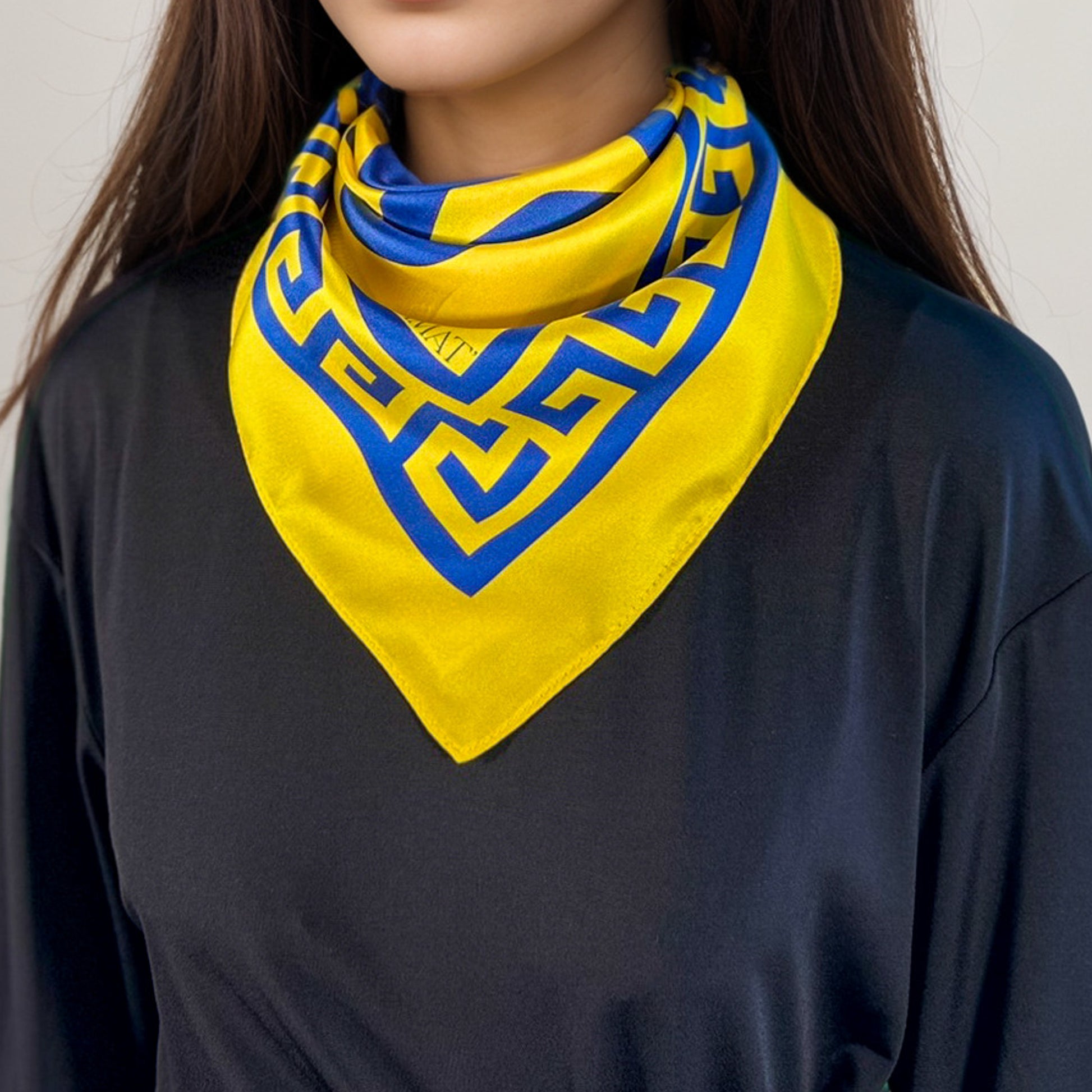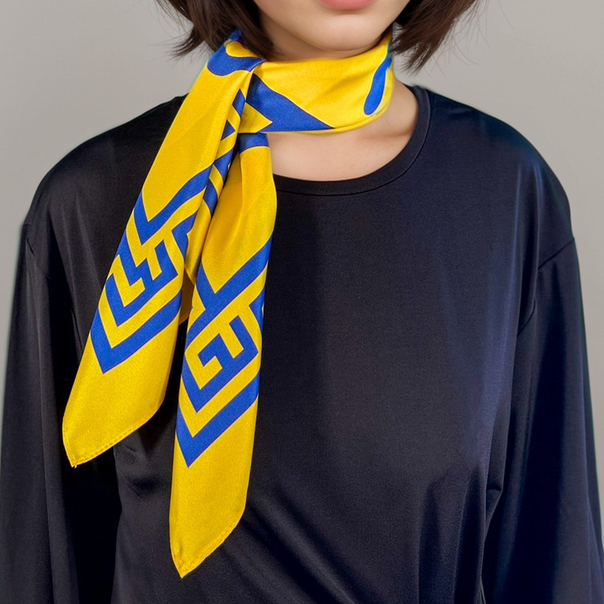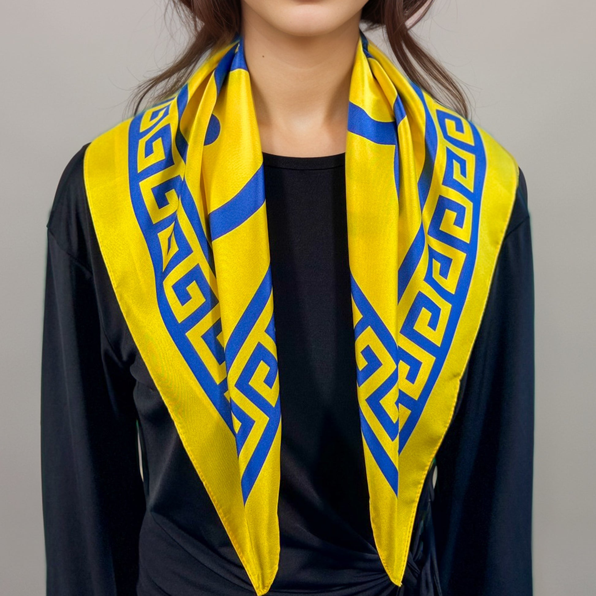 Ce foulard aux couleurs Jaune + Bleu se porte autour du cou, dans les cheveux, en ceinture ou attaché à un sac. Ses teintes Pop lui donnent un style affirmé, chic et moderne, parfait pour sublimer une tenue avec originalité. Convient aux femmes comme aux hommes.