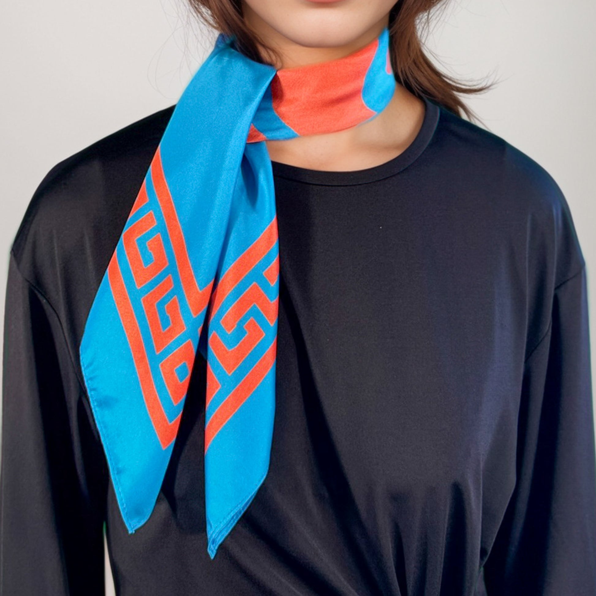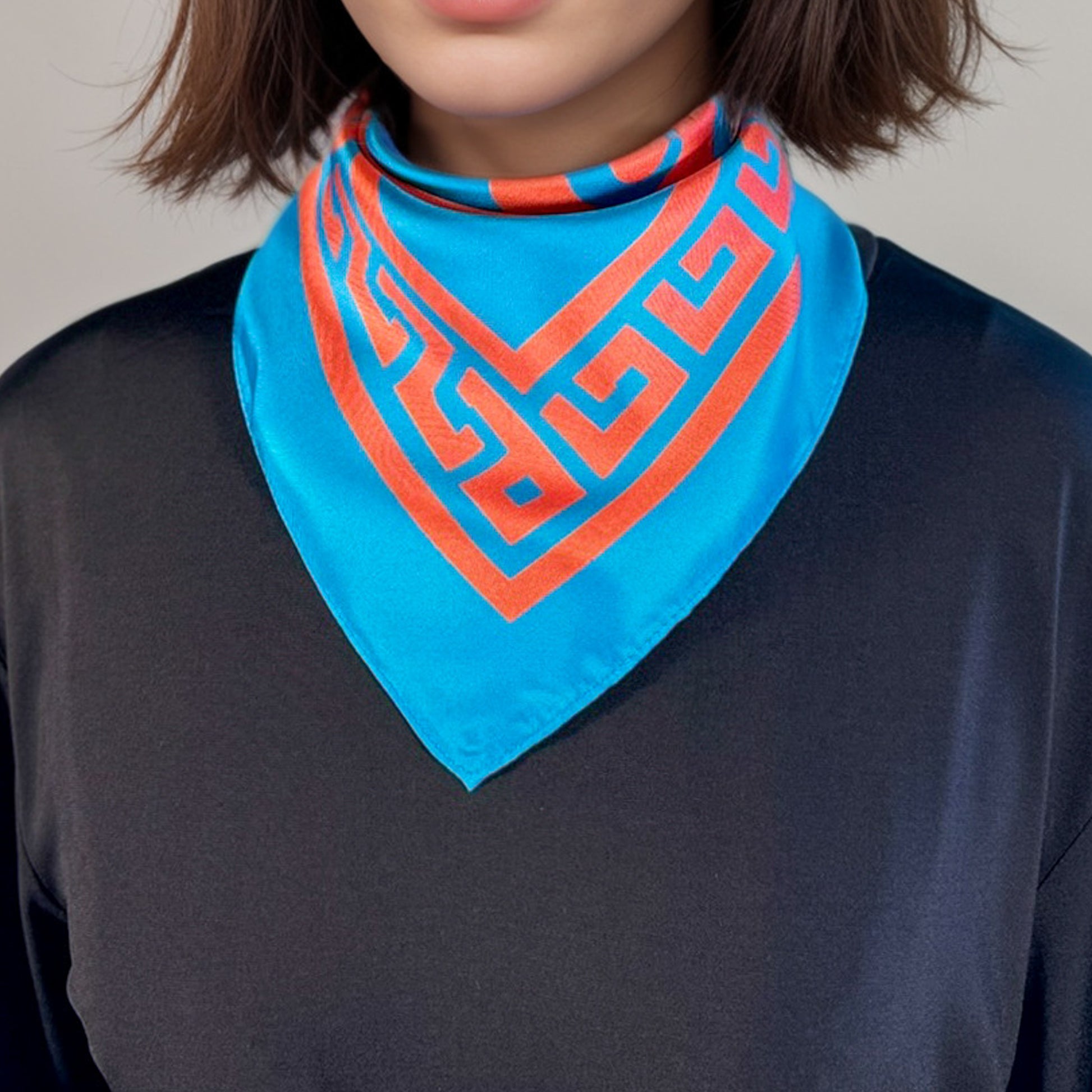 Ce foulard aux couleurs Bleu + Orange se porte autour du cou, dans les cheveux, en ceinture ou attaché à un sac. Ses teintes Pop lui donnent un style affirmé, chic et moderne, parfait pour sublimer une tenue avec originalité. Convient aux femmes comme aux hommes.
