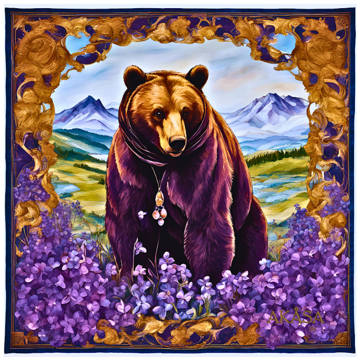 Carré de Soie 100% - Maison AKÅSA Biarritz - ᏲᎾ - Yona - (L'Ours) - Astrologie Amérindienne
