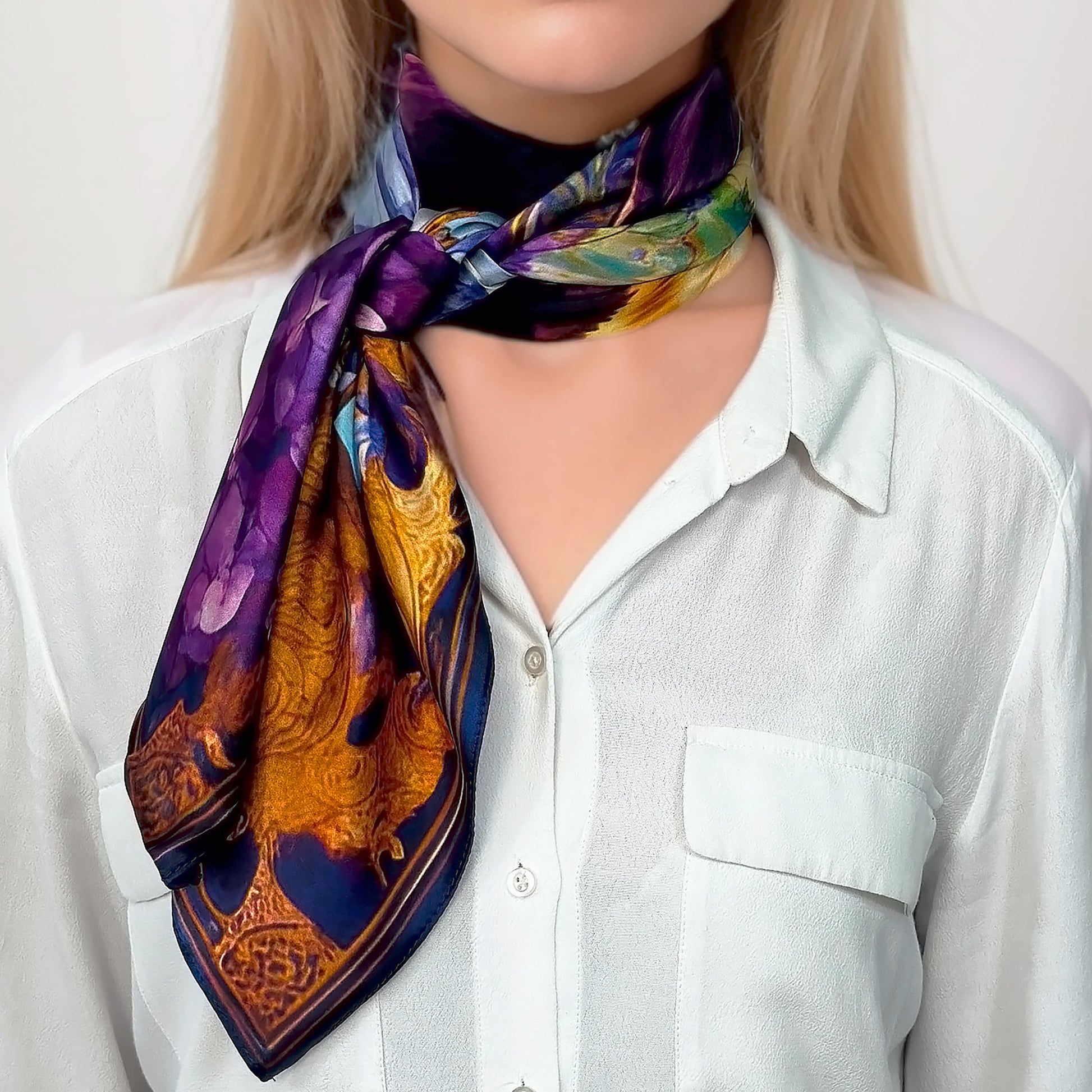Confectionné en satin de soie 12 mommes certifié OEKO-TEX®, ce carré de 88 cm séduit par son éclat raffiné et sa texture fluide. Ses motifs expriment l’énergie de l’Ours : puissant, enraciné, mais aussi profondément protecteur.