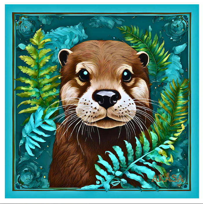 Carré 88 × 88 cm en Satin de Soie – Tsiya : La Loutre Bienveillante