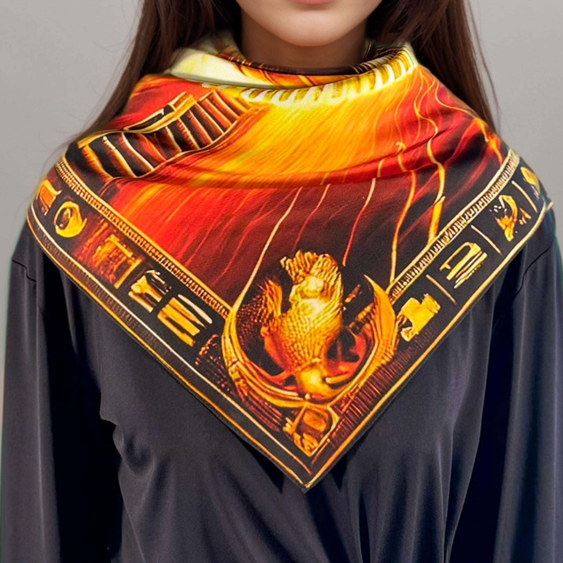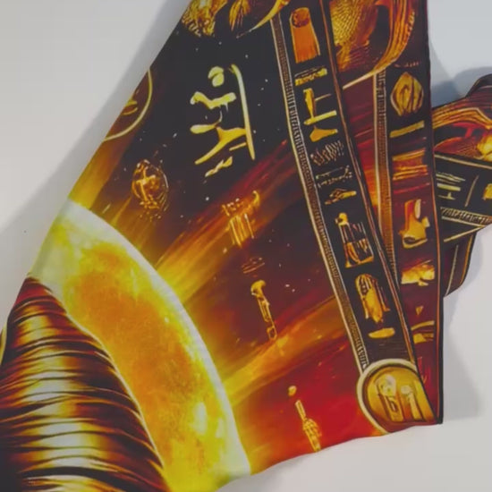 Mout, la Grande Mère d’Égypte, incarne la protection, la chaleur du Soleil et la force bienveillante de la création. Ce carré 88 cm en twill de soie 16 mommes, certifié OEKO-TEX® Standard 100, célèbre la douceur des origines et le courage du cœur maternel.